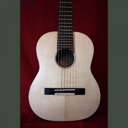 Fichte/ Ahorn, Hals aus Mahagoni. Nitrolackierung, FABS-Steg